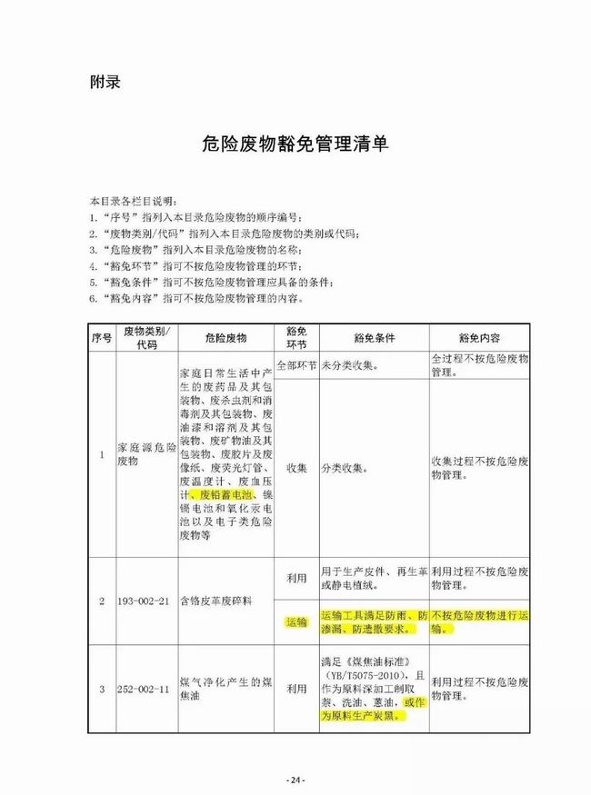 第四條列入本名錄附錄《危險(xiǎn)廢物豁免管理清單》中的危險(xiǎn)廢物,在所列的豁免環(huán)節(jié),且滿足相應(yīng)的豁免條件時(shí),可以按照豁免內(nèi)容的規(guī)定實(shí)行豁免管理。